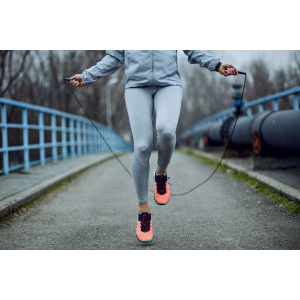Jumping rope is a simple and effective cardio exercise that helps you burn calories and improve your coordination. All you need is a jump rope and a flat surface.